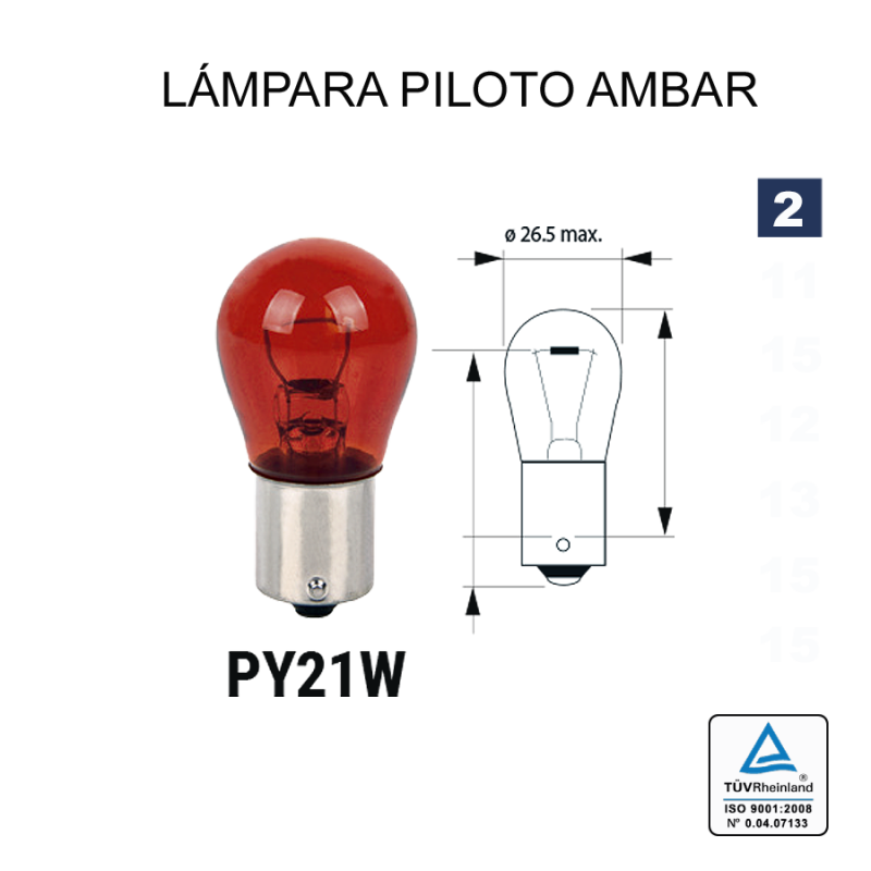 Bombilla lampara ambar py21 p21w 12v 21w ba15s(pack 10 unidades)coche moto