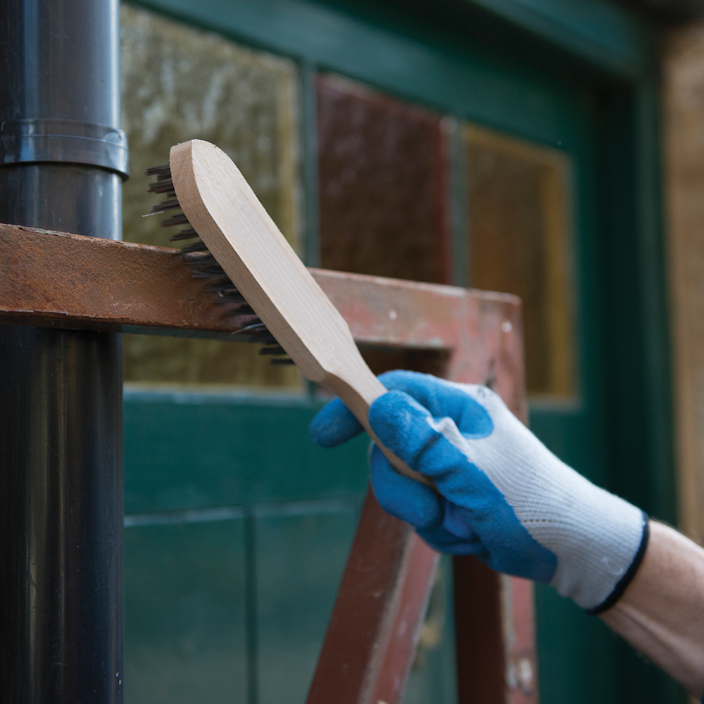 Cepillo de alambre resistente con cerdas de acero y mango de madera maciza. Longitud 290 mm.