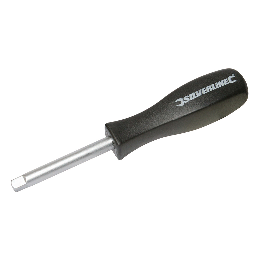 Destornillador de cromo-vanadio endurecido y templado, cromado para evitar la corrosión. Rodamientos con resorte. Macho 1/4″.