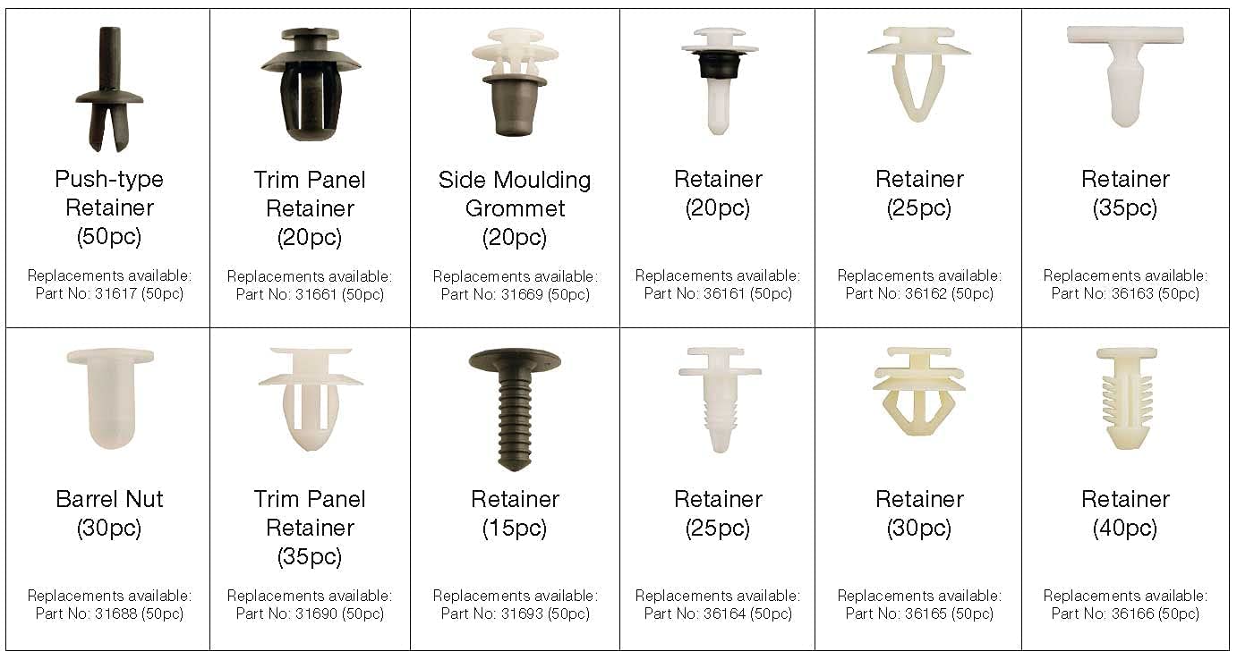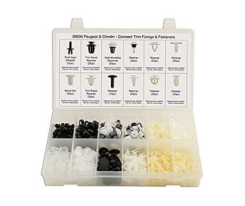 pack de 345 grapas para citroen / peugeot para el anclaje de puertas, paneles, rejillas, defensa y otras partes de la carrocería internas o externa de estos vehículos.