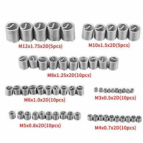 10 roscas de reparación m3 x 0,5 x 2d, 10 roscas de reparación m4 x 0,7 x 2d, 10 roscas de reparación m5 x 0,8 x 2d, 10 roscas de reparación m6 x 1,0 x 2d, 10 roscas de reparación m8 x 1,25 x 2d, 5 roscas de reparación x m10 x 1.5 x 2d 5 roscas de reparación m12 x 1,75 x 2d.