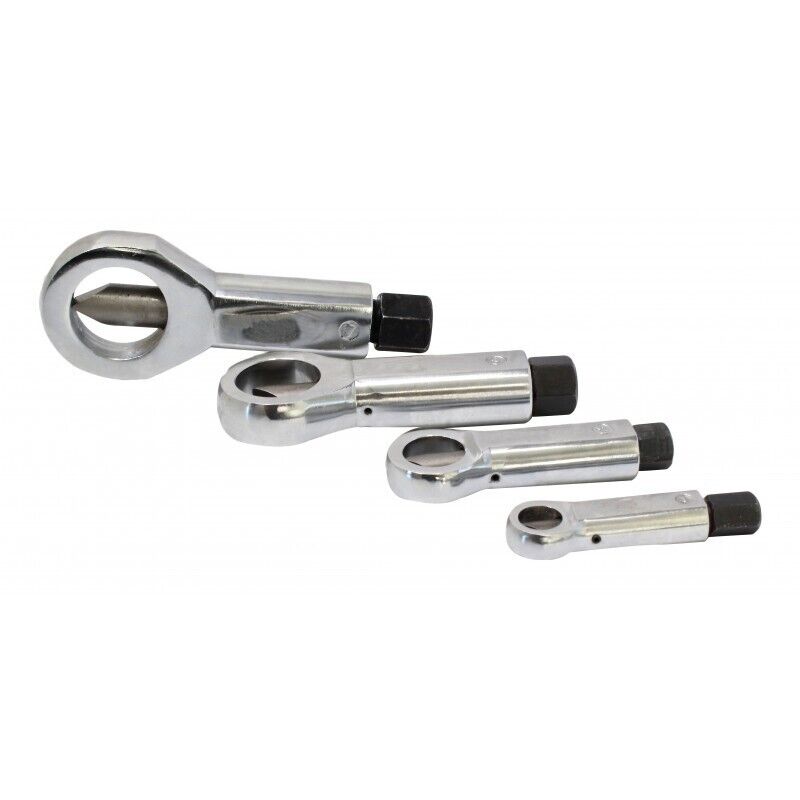 juego de 4 llaves rompetuercas con cuerpo de acero perfectas para romper tuercas duras, oxidadas, corroídas, redondeadas, que no es posible extraer de otra forma.