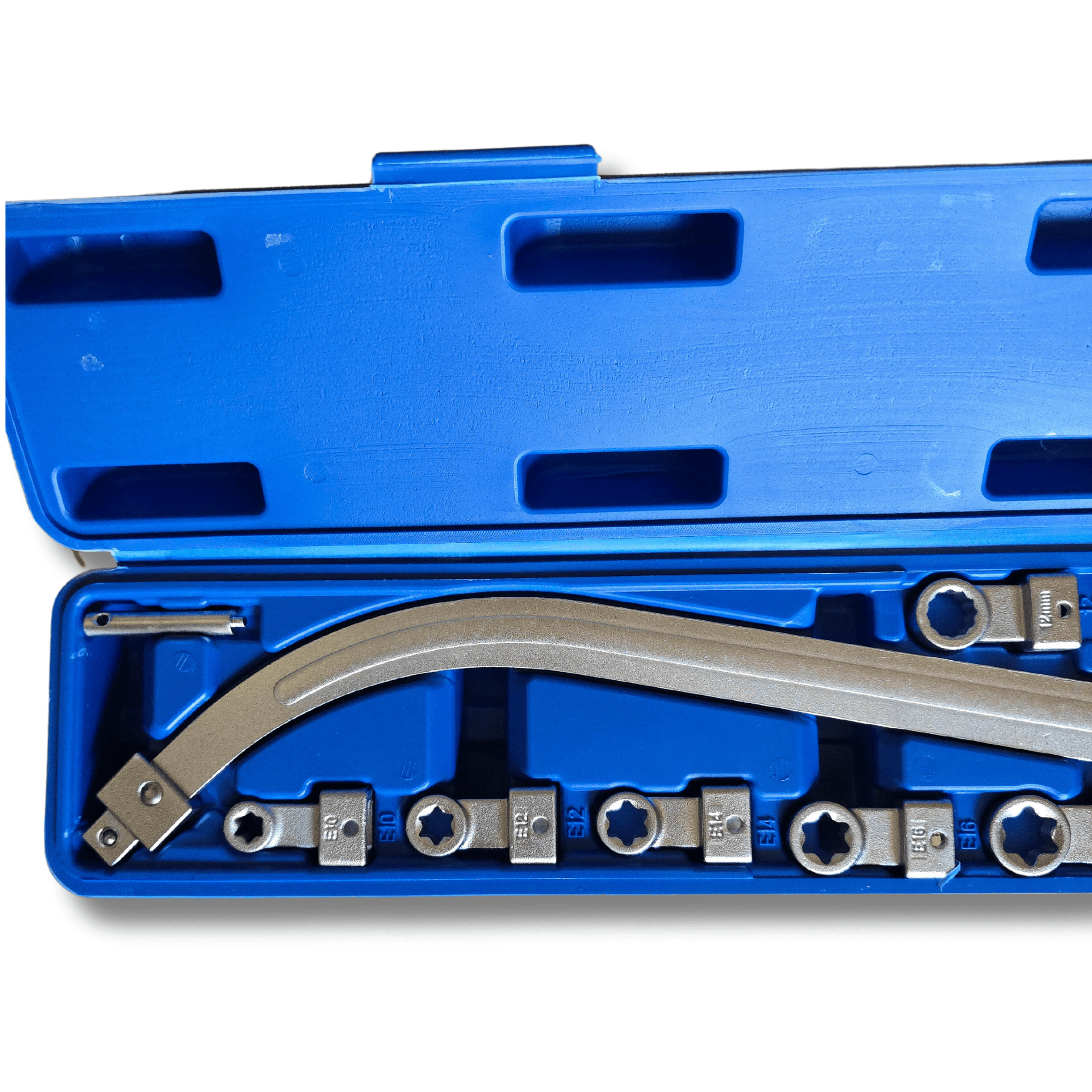 Juego de Llaves para Tensar Correas de Distribución Universal Torx E10-E18 y 12 Caras 12-19 mm