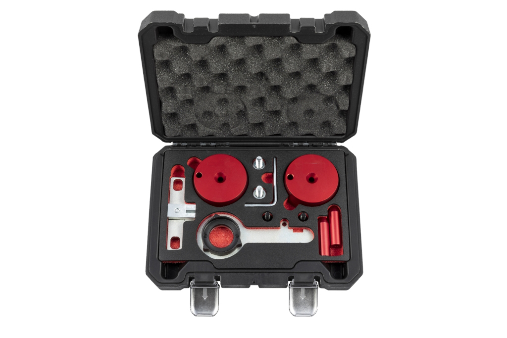 Este kit de puesta a punto de motor ha sido diseñadro para el reciente modelo de motor Ford 2.0D EcoBlue TDCi, que tiene un diseño de “correa en aceite”, en el que la correa de transmisión está ubicada dentro de la parte engrasada del motor. Este kit consta de herramientas de alineación del cigüeñal, de bloqueo del volante motor y de montaje de la correa. Estas herramientas son necesarias para extraer y reinstalar la correa de distribución sin riesgo de daños en el motor.