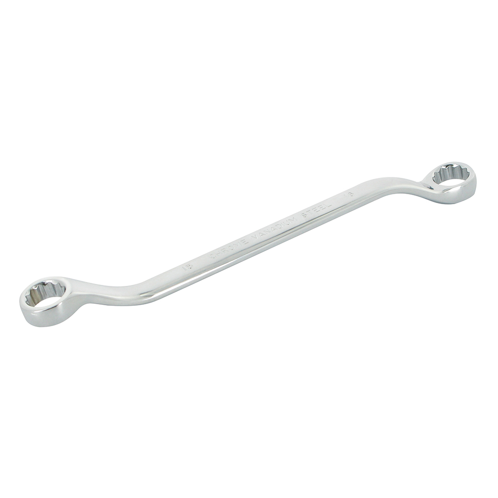 Fabricada en acero templado cromo-vanadio, doble punta acodada con ángulo de 75°. Acabado pulido.