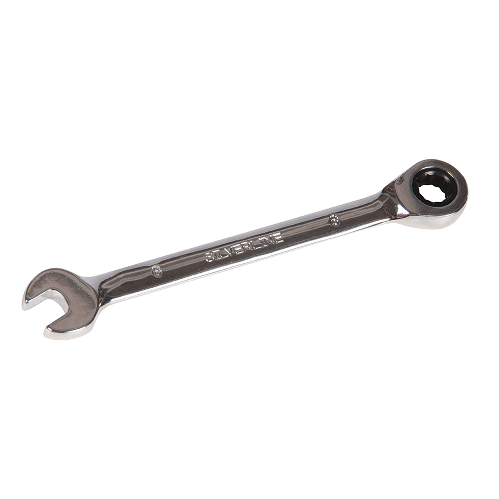 Llave combinada métrica pulida de aleación de acero 40 Cr. Acción de carraca de 8°.