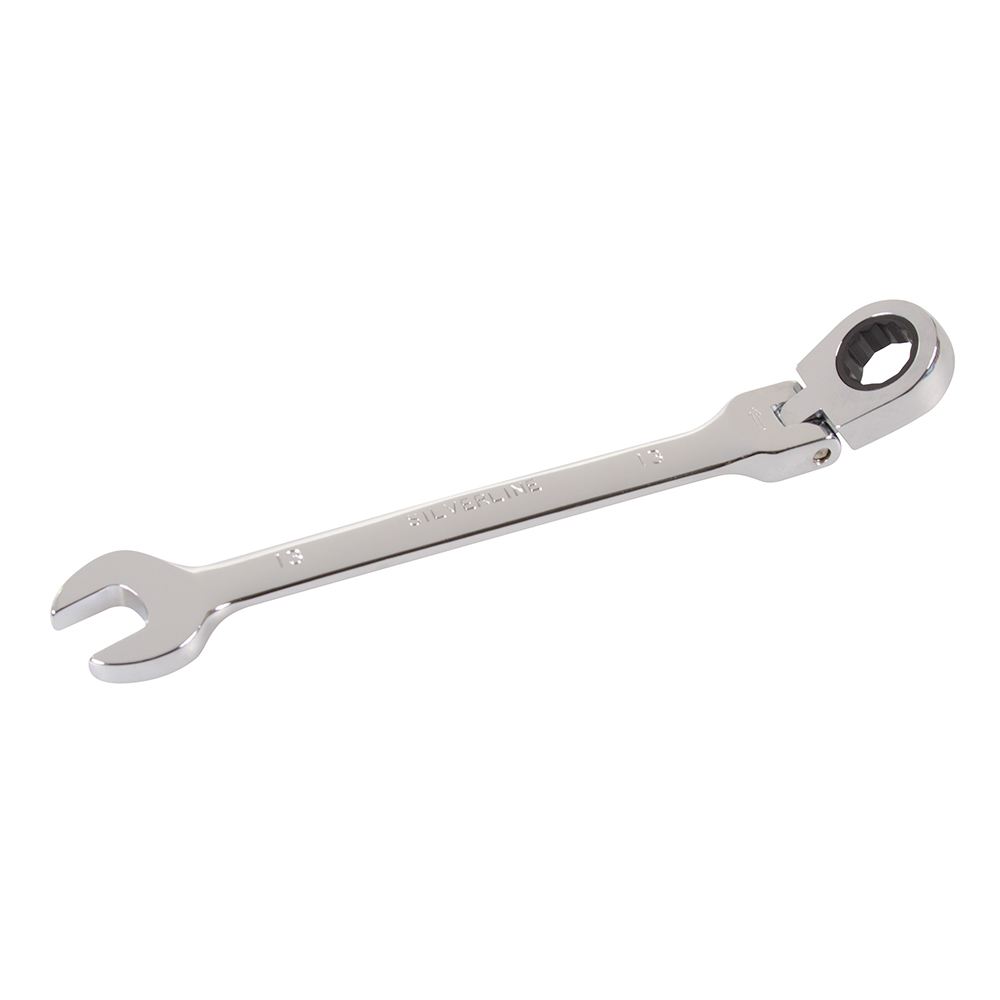 De aleación cromo-vanadio 40 Cr, acabado pulido. Métrica. Acción de carraca de 8°. Cabeza articulada de 180°.