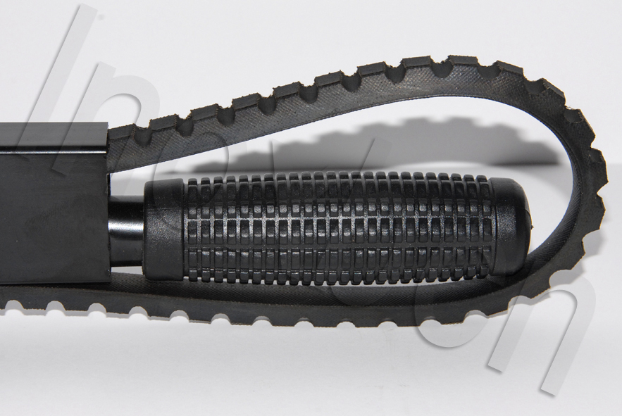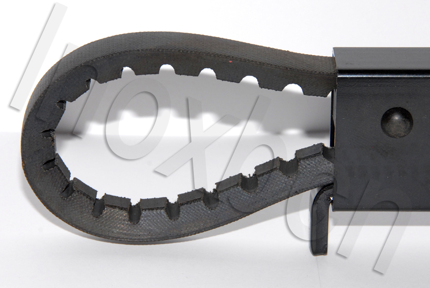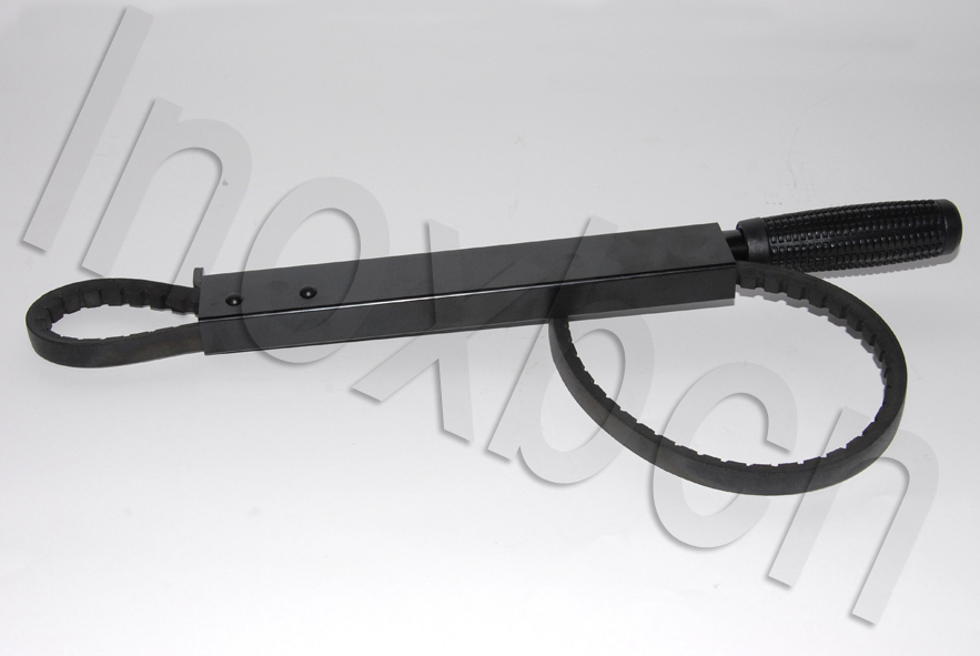 Llave para sujetar poleas de correas a la hora de apretar el tornillo central. para las sujeción y el bloqueo de las poleas acanaladas tipo v que se encuentra en los alternadores y bombas de agua (también útil para la rotación de los árboles de levas)