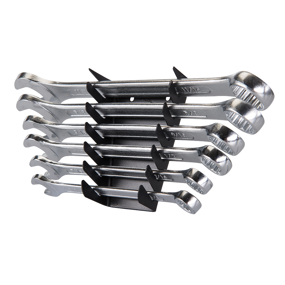 Llaves de cromo-vanadio pulidas. Llaves métricas de 8, 10, 12, 13, 14 y 17 mm. AF de 3/8″, 7/16″, 1/2″, 9/16″, 5/8″ y 11/16″.