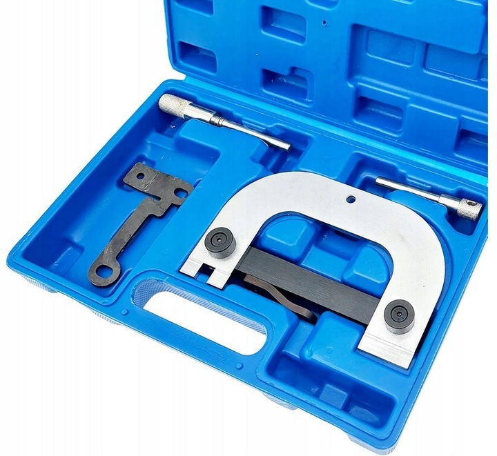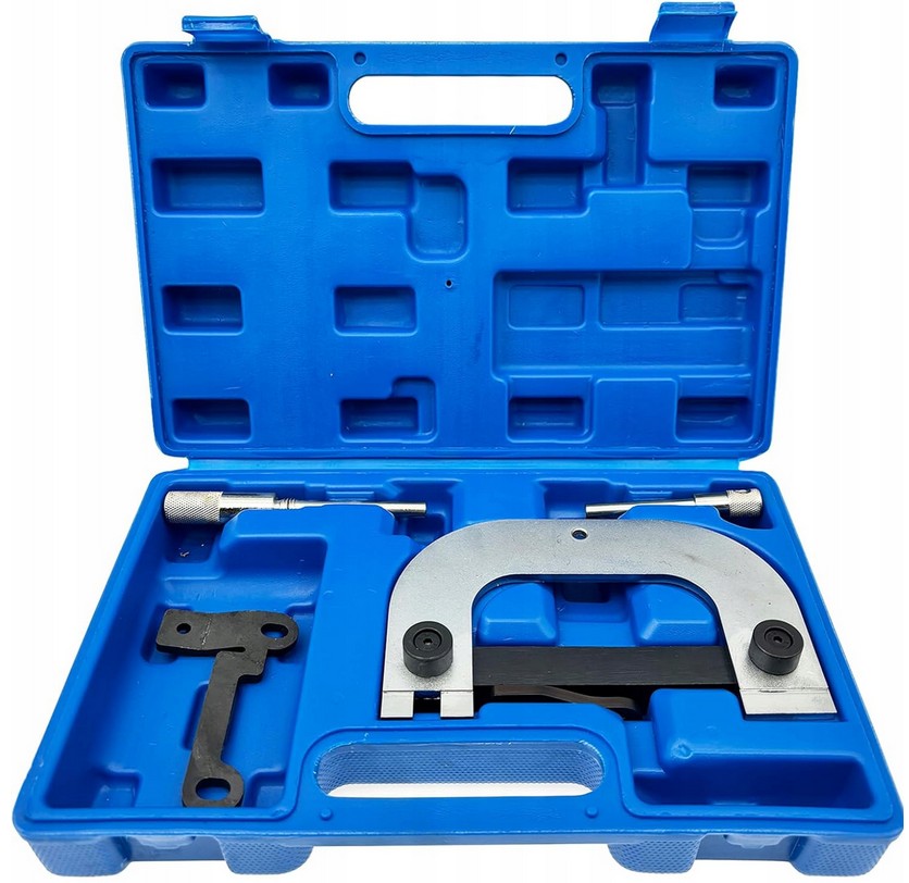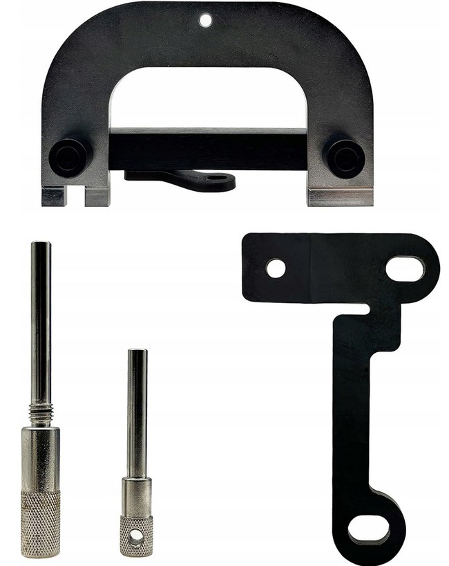 El juego incluye una herramienta de bloqueo del cigüeñal, un pasador para ajustar el PMS y una barra de ajuste del árbol de levas.