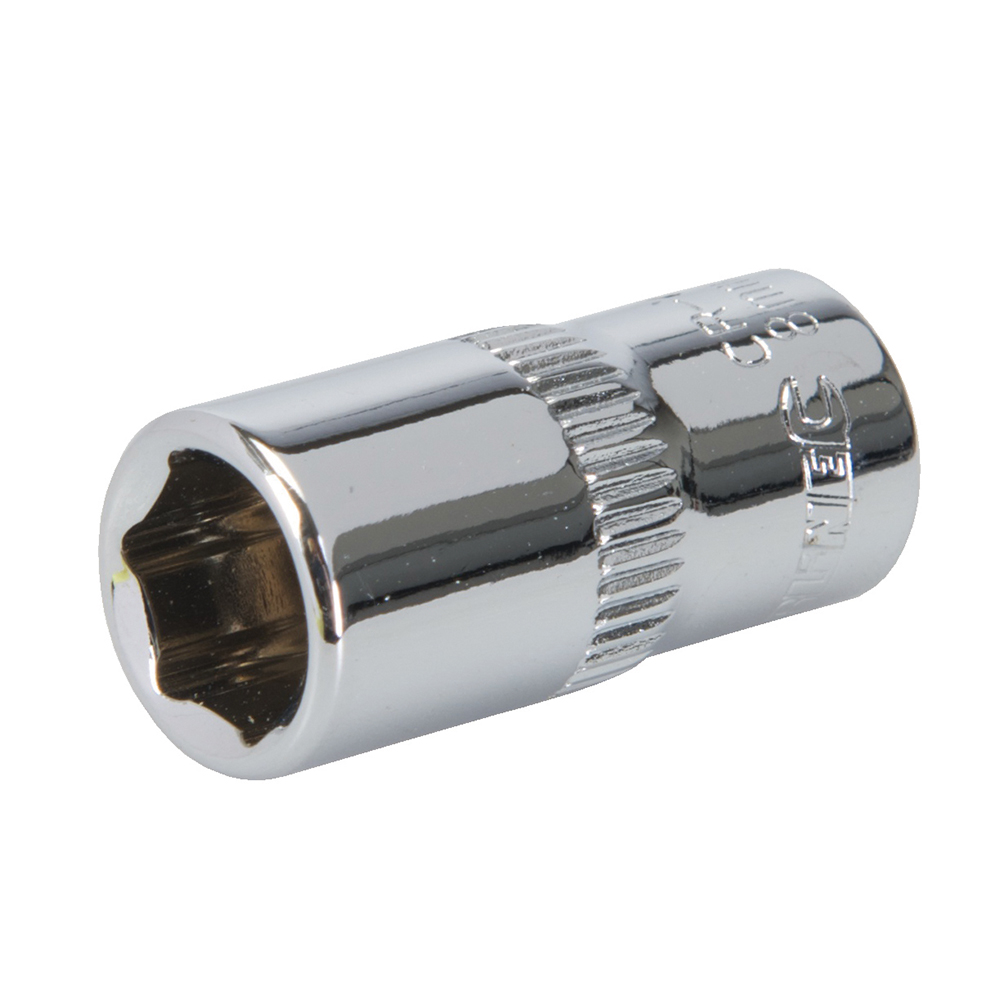 Vaso métrico fabricado en acero cromo-vanadio cromado con acabado espejo. Chaflanado para un mejor encaje. Radio diseñado para mejor par de torsión y mayor durabilidad. Banda moleteada, agujero de retención con bolas. Conforme a DIN3124/ISO2725 y DIN3120/ISO1174.